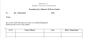 6.1 Requisition for Allotment of Room Number – Annexure-1