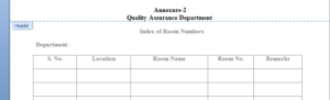index of room shall be given by QA department and approved by Manager QA as per Annexure-1 & Annexure-2.